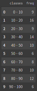 classes = [f'{num} - {num+10}' for num in range(0, 100, 10)]