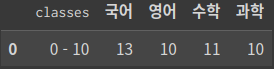 - pandas dataframe의 컬럼명을 classes에서 '급간'으로 바꾸기